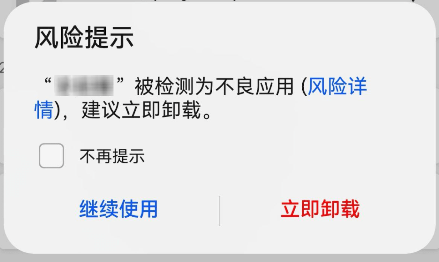 当应用出现以下风险提示时,请勾选不再提示,选择继续使用