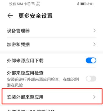 2. 开启“外部来源应用下载”,关闭“外部来源应用检查”