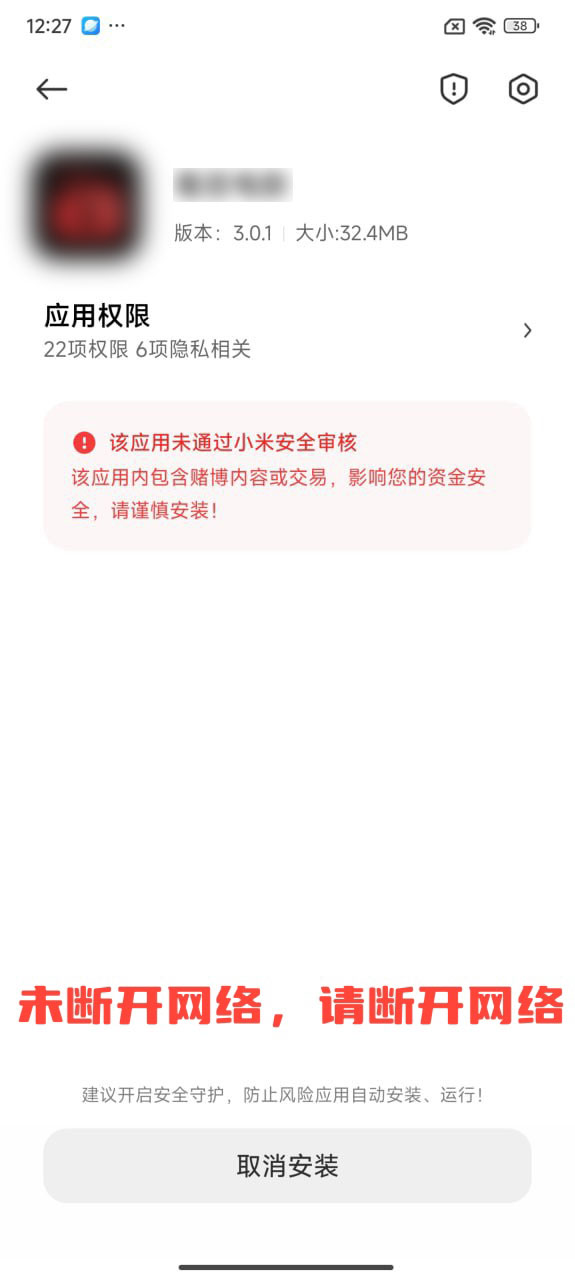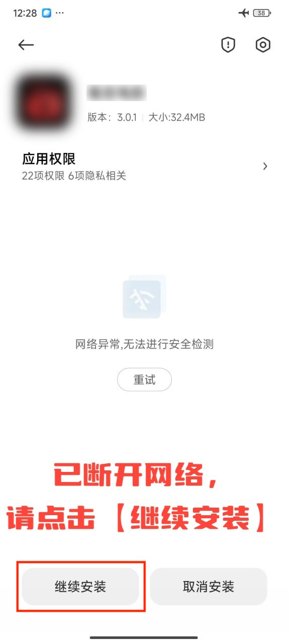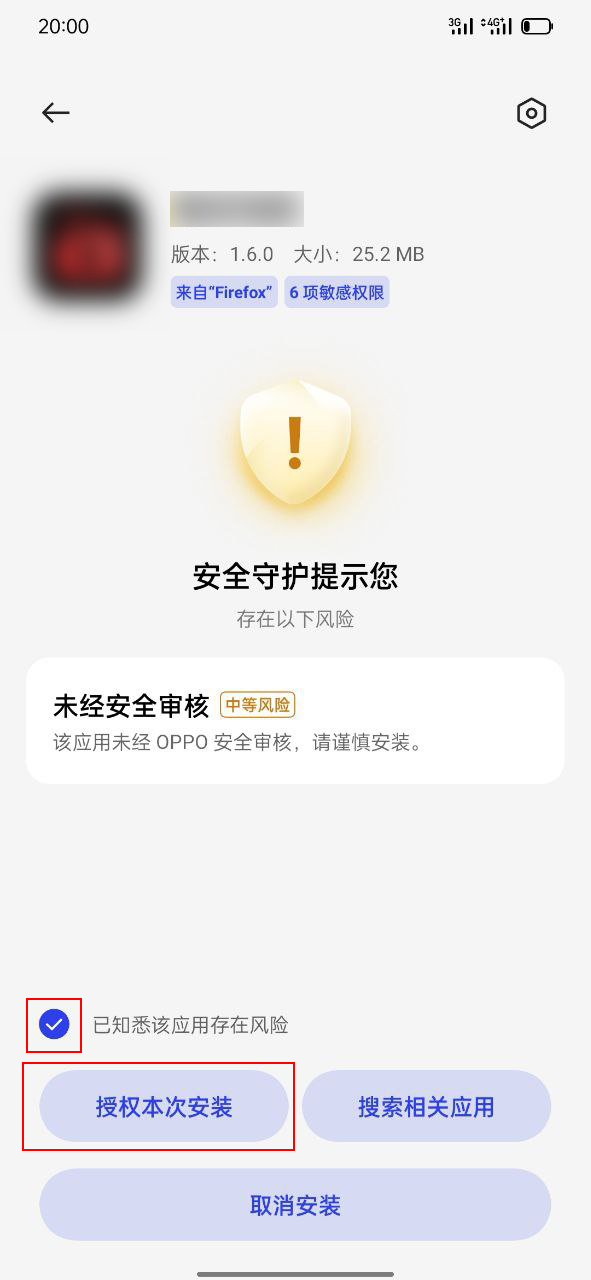 3.取消系统默认风险提示后, 再次点击apk安装即可