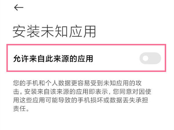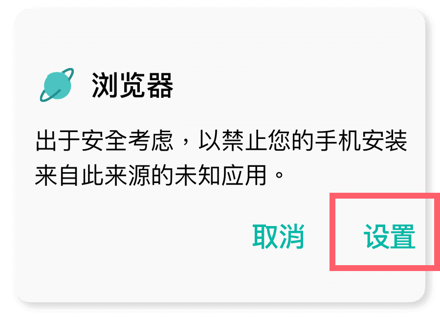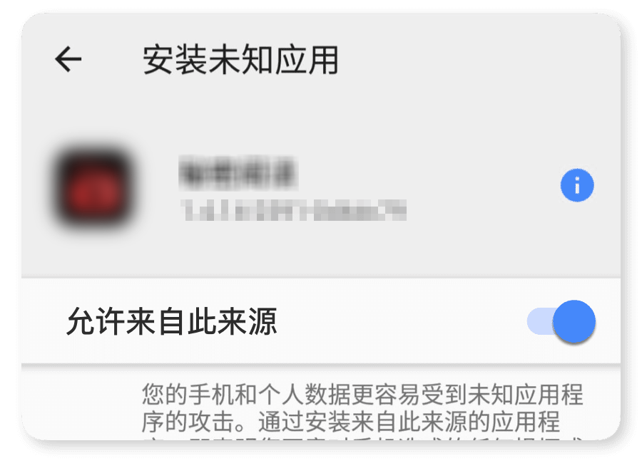 1.手机设置中搜索 [安装未知应用] ,选择我们的应用后,开启 [允许来自此来源的应用]