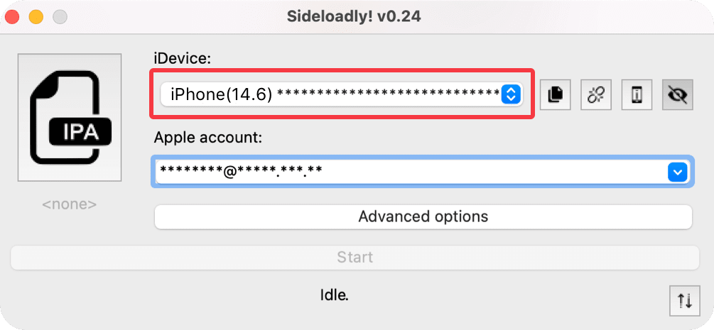 打开 Sideloadly,iDevice 栏位会显示出您的装置名称