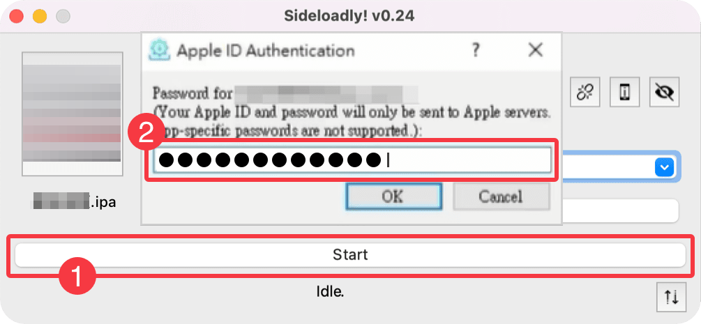 6.点击「Start」后,于视窗内填入您 Apple 账号的密码